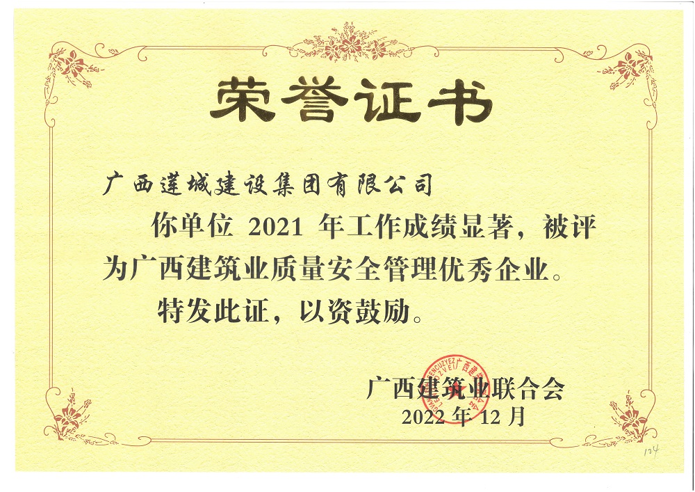 2021年廣西建筑業(yè)質(zhì)量安全管理優(yōu)秀企業(yè)