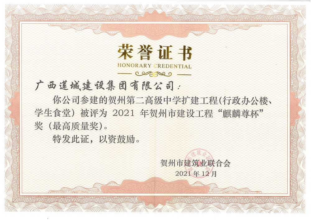 2021年賀州市建設(shè)工程“麒麟尊杯”獎(jiǎng)(最高質(zhì)量獎(jiǎng))賀州第二高級(jí)中學(xué)擴(kuò)建工程(行政辦公樓、學(xué)生食堂)