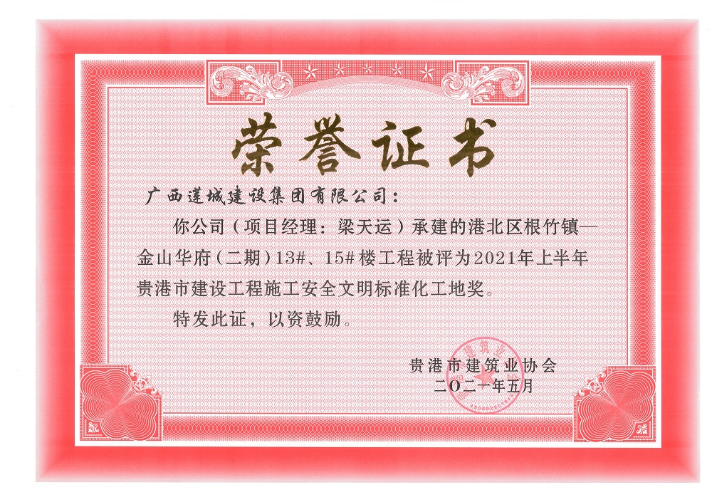 2021年上半年貴港市建設(shè)工程施工安全文明標(biāo)準(zhǔn)化工地獎(jiǎng)港北區(qū)根竹鎮(zhèn)—金山華府(二期)11#、12#、16#樓工程,項(xiàng)目經(jīng)理:梁天運(yùn).jpg