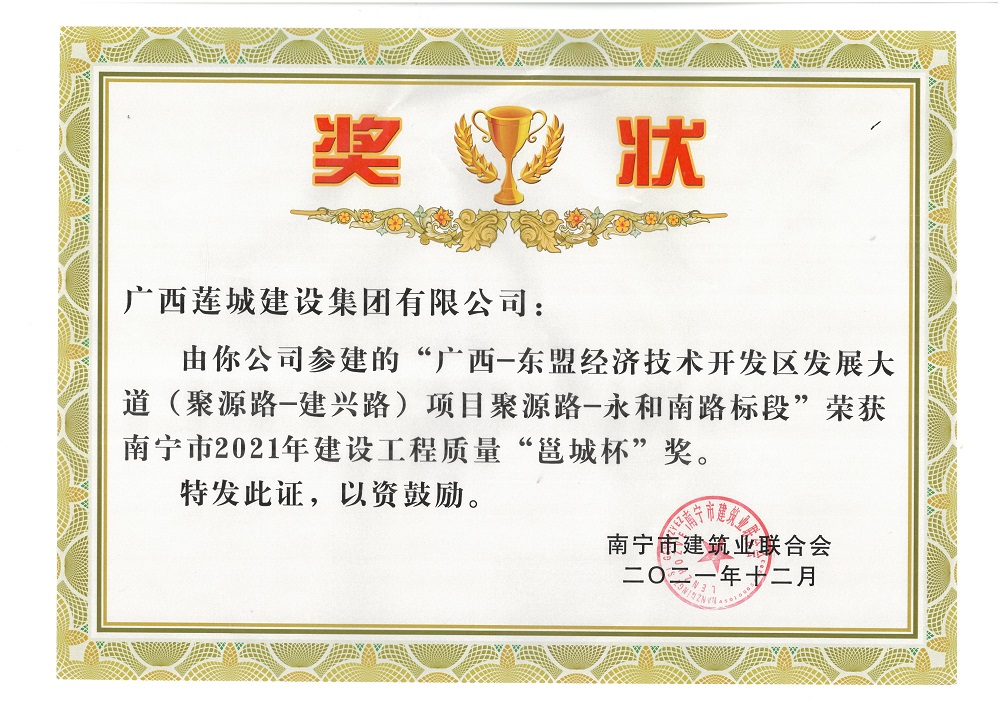 2021年南寧市建設(shè)工程質(zhì)量“邕城杯”廣西-東盟經(jīng)濟(jì)技術(shù)開發(fā)區(qū)發(fā)展大道(聚源路-建興路)