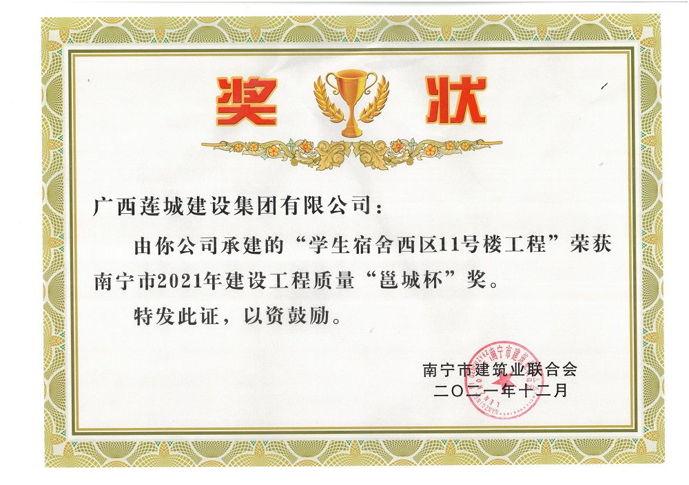 2021年貴港市建設(shè)工程優(yōu)質(zhì)結(jié)構(gòu)獎(jiǎng)蓮城大廈工程,項(xiàng)目經(jīng)理:姜雄雁