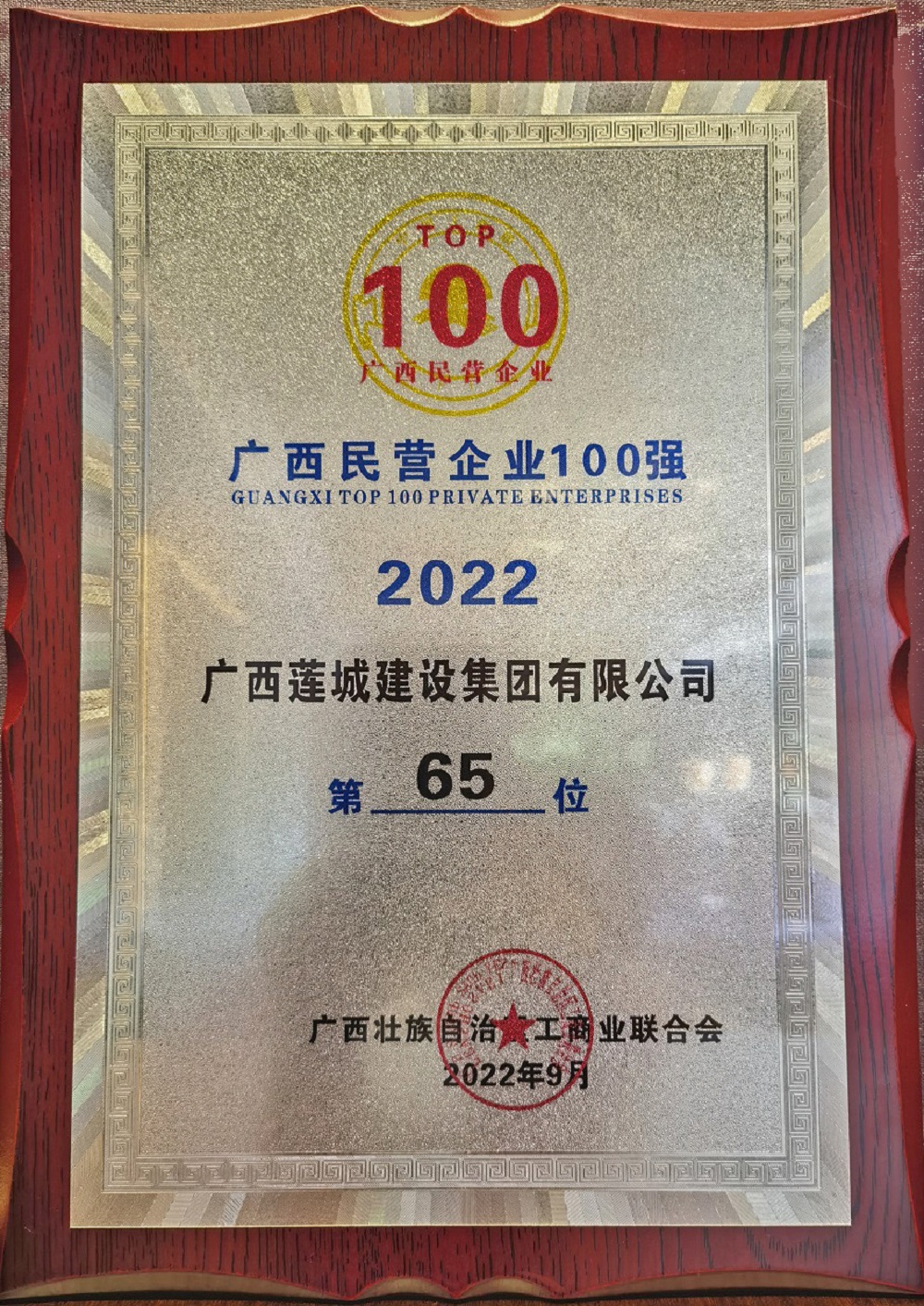 2022年廣西民營企業(yè)100強(qiáng),第65位