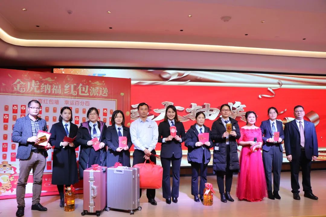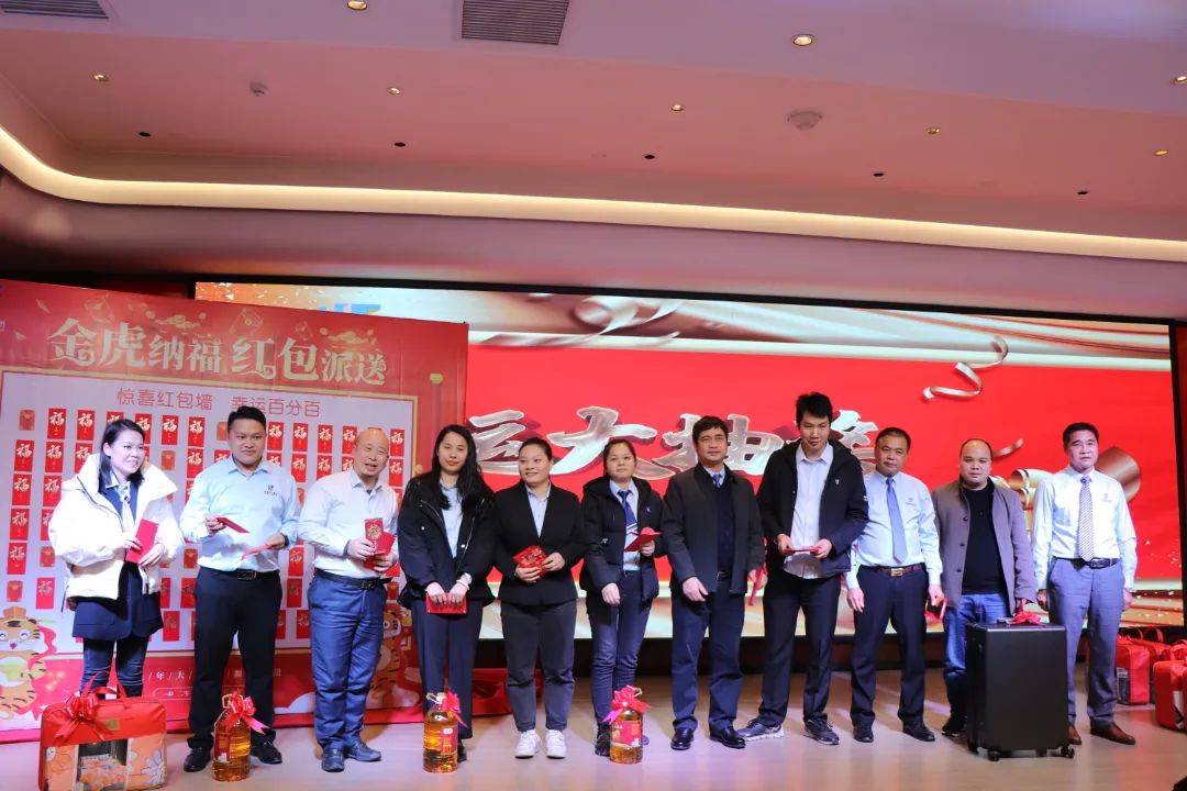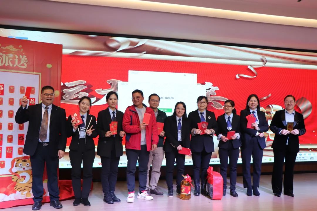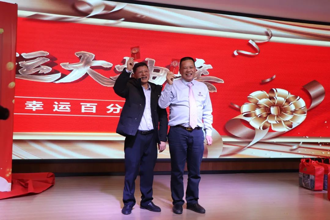 迎春晚宴及幸運(yùn)大抽獎(jiǎng)活動(dòng)在集團(tuán)公司董事長(zhǎng)譚燕喜致祝酒詞中拉開(kāi)帷幕,大家相互舉杯、互道祝福,現(xiàn)場(chǎng)氣氛異常熱烈。用餐20分鐘后,最令大家期待的幸運(yùn)大抽獎(jiǎng)環(huán)節(jié)開(kāi)始了。在陳夢(mèng)華總經(jīng)理和譚燕喜董事長(zhǎng)的首輪抽獎(jiǎng)下,一共產(chǎn)生了30名幸運(yùn)兒,接著由各分管領(lǐng)導(dǎo)陸續(xù)抽出余下53名幸運(yùn)兒。諸多獎(jiǎng)項(xiàng)一一揭曉,不斷將年會(huì)掀起高潮,笑聲、掌聲、歡呼聲不時(shí)地在整場(chǎng)晚宴活動(dòng)中蕩漾。