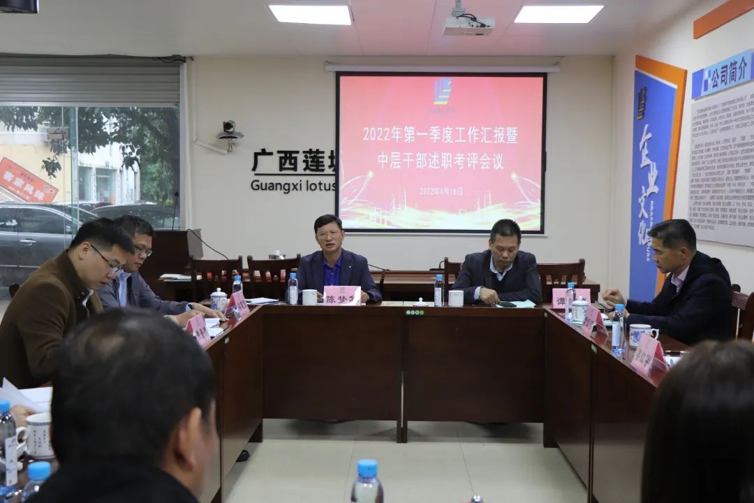 4月18日下午,集團公司在一樓會議室召開2022年第一季度工作匯報暨中層干部述職考評會議。總經理陳夢華出席會議并作重要講話。領導班子成員譚燕喜、姜紅華、黃添明、譚景騰、謝喬勇、梁惠侃等參加。會議由副總經理謝喬勇主持。
