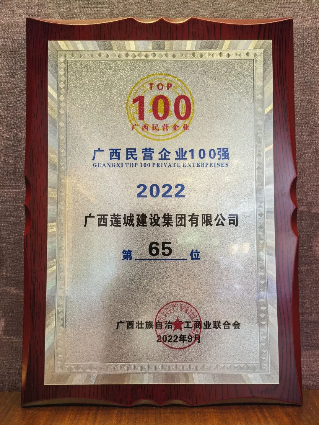 9月6日上午,“2022廣西民營(yíng)企業(yè)100強(qiáng)”發(fā)布會(huì)在柳州召開。會(huì)上,廣西工商聯(lián)發(fā)布了“2022廣西民營(yíng)企業(yè)100強(qiáng)”“2022廣西民營(yíng)企業(yè)制造業(yè)100強(qiáng)”等榜單。廣西蓮城建設(shè)集團(tuán)有限公司以優(yōu)異的成績(jī)?nèi)脒x2022廣西民營(yíng)企業(yè)100強(qiáng)第65位!