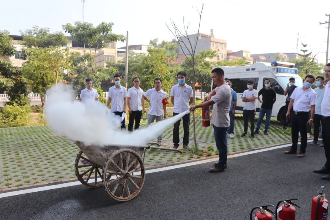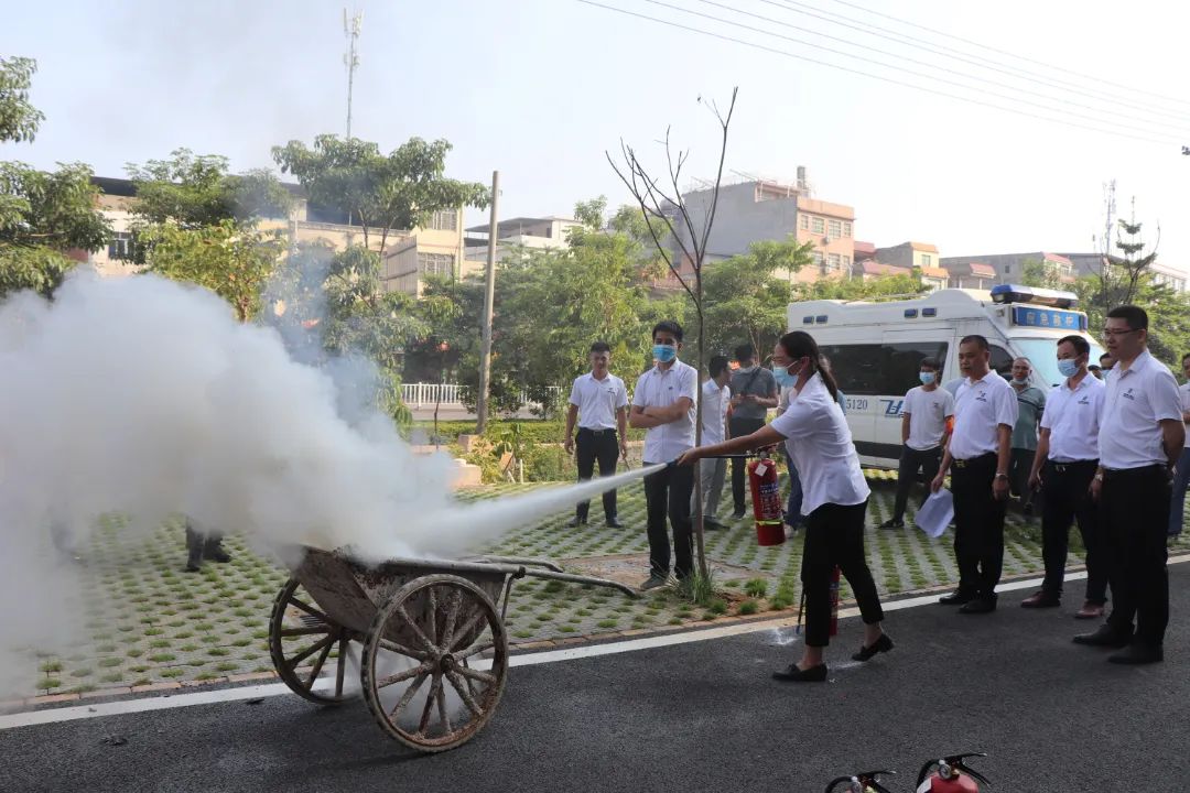 第二階段,由副總指揮黃志剛現(xiàn)場演示了消防器材的正確使用方法、撲救初期火災(zāi)方式及相關(guān)注意事項,并組織員工體驗現(xiàn)場滅火過程。