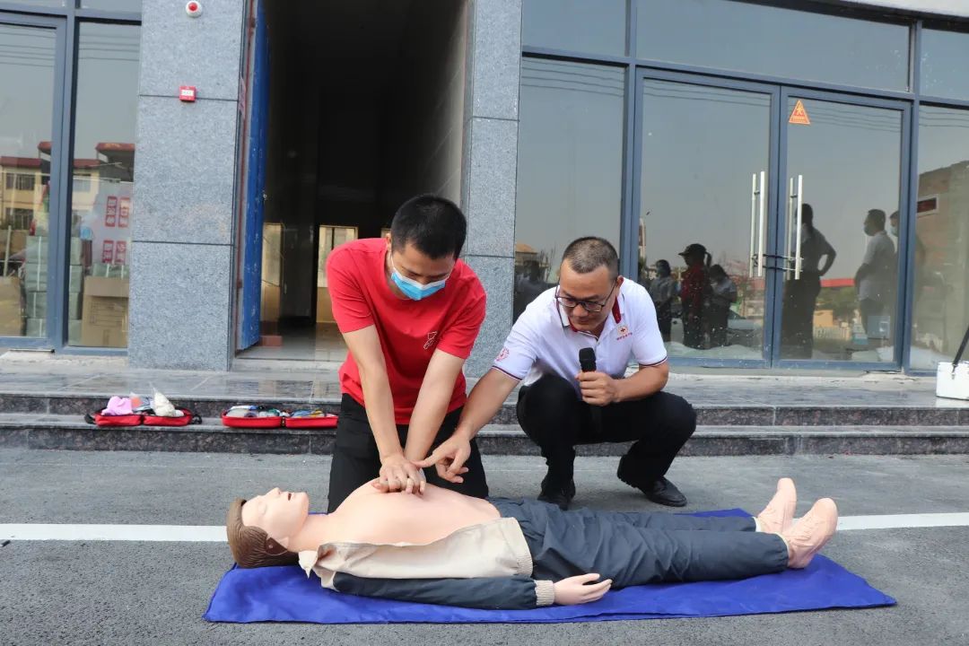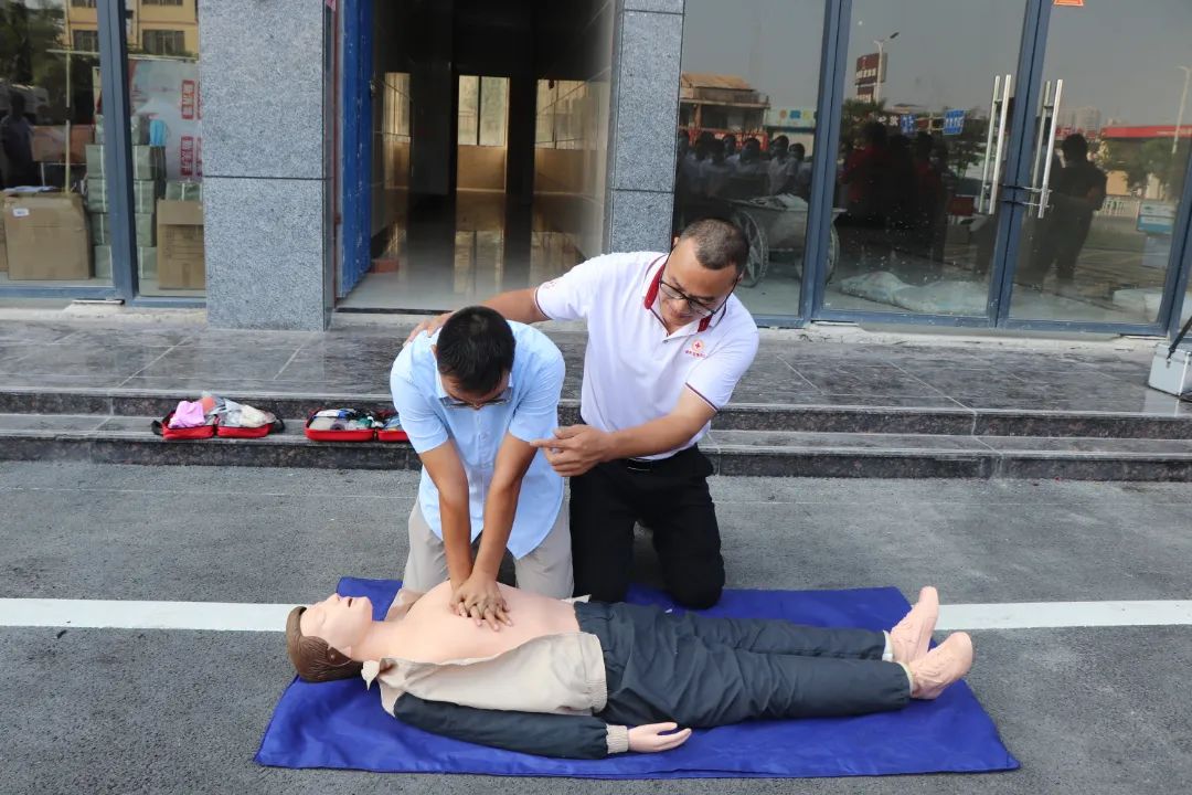 本次活動分為兩個階段。第一階段,港南區(qū)紅十字會對公司全員進(jìn)行應(yīng)急救護(hù)技能培訓(xùn)。實操過程中,老師一邊念著“口訣”,一邊通過“模擬人”向大家演示心肺復(fù)蘇術(shù)、人工呼吸法等緊急救護(hù)技術(shù),提醒大家要根據(jù)被救者的實際情況進(jìn)行施救,避免造成“二次傷害”。現(xiàn)場的員工認(rèn)真聆聽,并積極參與到心肺復(fù)蘇術(shù)實操演練中,有不規(guī)范的動作老師立即手把手進(jìn)行了指導(dǎo)和糾正。