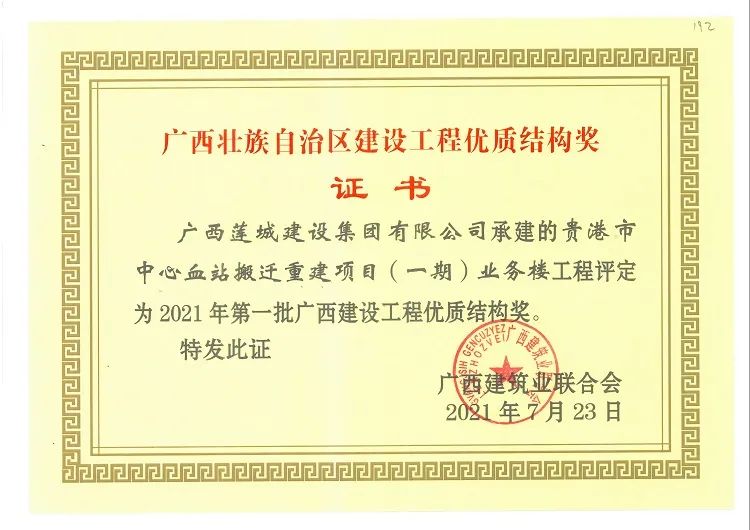 2021年貴港市建設(shè)工程優(yōu)質(zhì)結(jié)構(gòu)獎