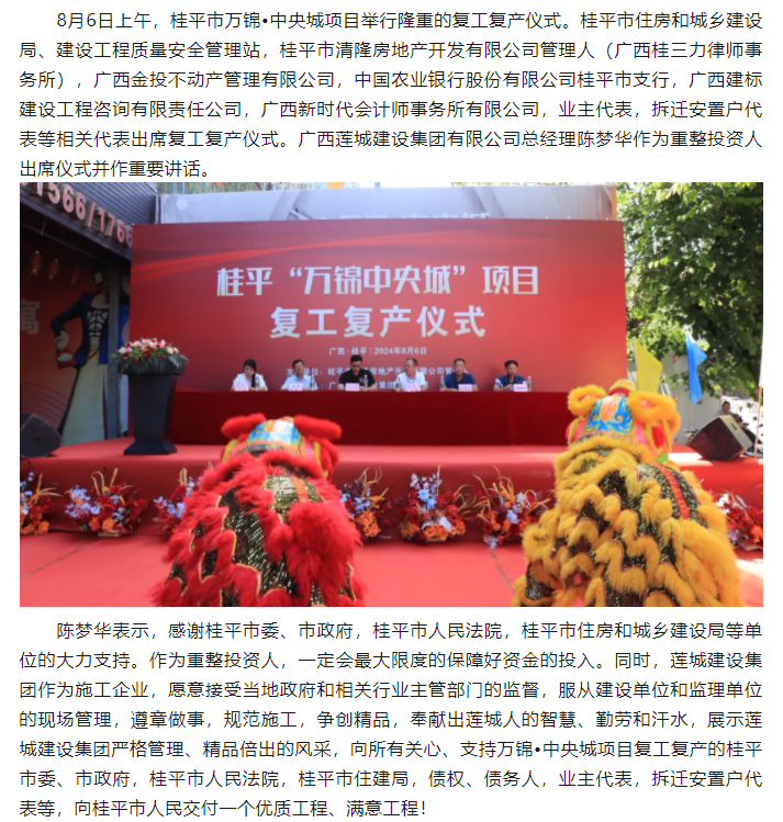 8月6日上午,桂平市萬錦?中央城項目舉行隆重的復工復產(chǎn)儀式。...