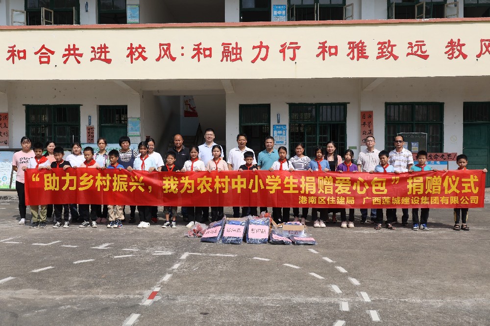10月26日,港南區(qū)住建局、廣西蓮城建設(shè)集團(tuán)有限公司聯(lián)合在港南區(qū)木梓鎮(zhèn)龍聯(lián)小學(xué)三聯(lián)分校舉行“助力鄉(xiāng)村,我為農(nóng)村中小學(xué)生捐贈(zèng)愛心包”捐贈(zèng)儀式。 活動(dòng)現(xiàn)場(chǎng),與會(huì)領(lǐng)導(dǎo)共為該校學(xué)生捐贈(zèng)“書包+籃球+文具盒”愛心包50套,并親切問候?qū)W生學(xué)習(xí)、生活情況,鼓勵(lì)他們努力學(xué)...