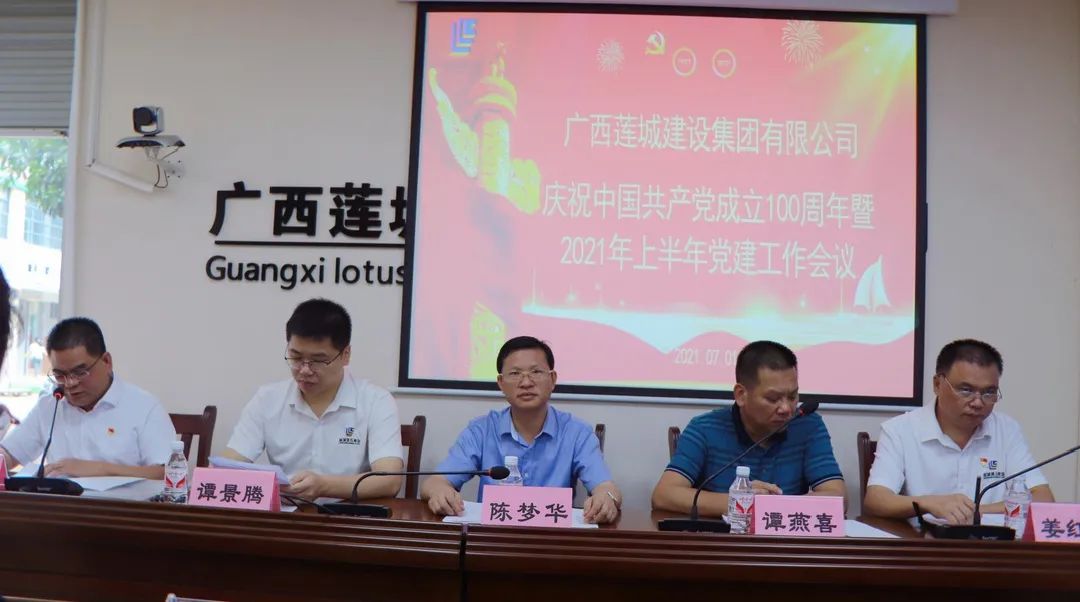 7月1日,廣西蓮城建設(shè)集團有限公司召開慶祝中國共產(chǎn)黨成立100周年暨2021年上半年黨建工作會議。集團公司總經(jīng)理陳夢華出席并作重要講話。董事長譚燕喜,副總經(jīng)理、安全總監(jiān)譚景騰,副總經(jīng)理、總工程師姜紅華,總經(jīng)理助理、經(jīng)營處處長謝喬勇等領(lǐng)導(dǎo)參加。會議由總經(jīng)理助理謝喬勇主持。