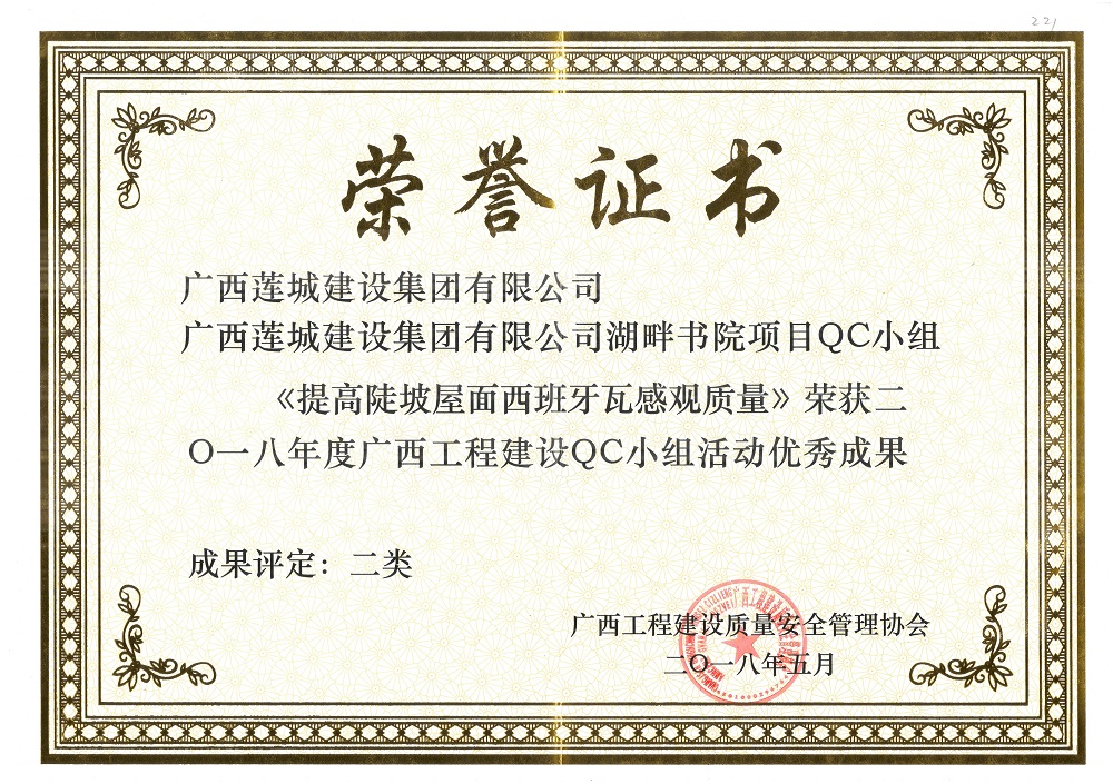 《提高陡坡屋面西班牙瓦感觀質(zhì)量》湖畔書院項目QC二類優(yōu)秀成果