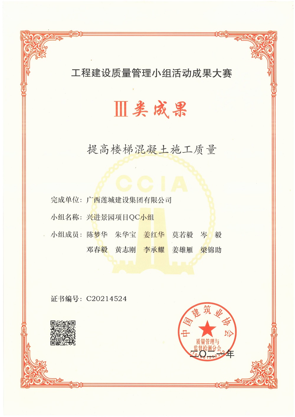 2021年工程建設質(zhì)量管理小組活動成果大賽QC小組