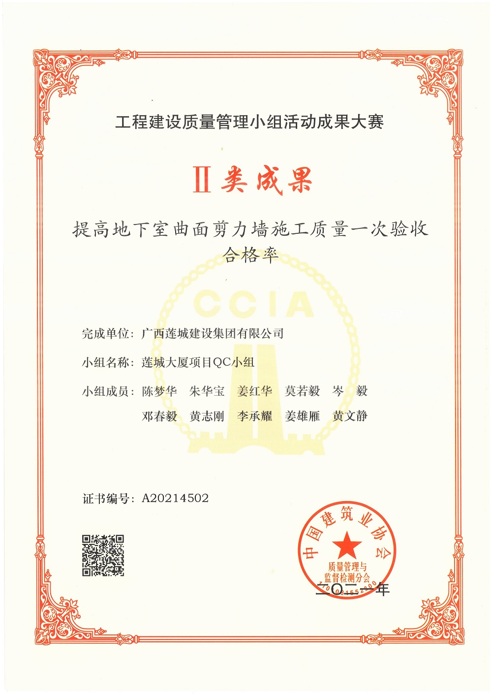 提高地下室曲面剪力墻施工質(zhì)量一次驗收合格率,蓮城大廈項目QC小組